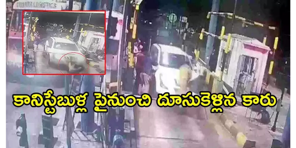 వాహనాలు తనిఖీ చేస్తున్న పోలీసుల పైనుంచి దూసుకెళ్లిందో కారు. ఈ ఘటనలో ఇద్దరు కానిస్టేబుళ్లు తీవ్రంగా గాయపడ్డారు.