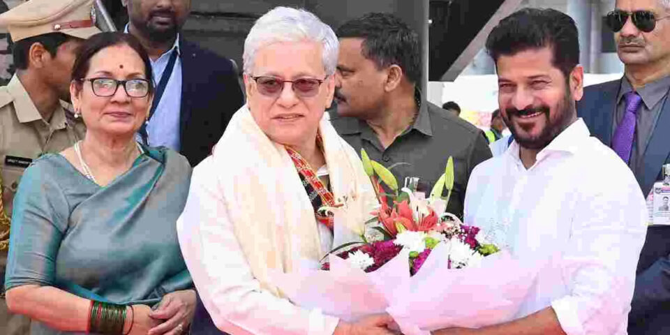 శంషాబాద్లోని రాజీవ్గాంధీ అంతర్జాతీయ విమానాశ్రయం లో తెలంగాణ రాష్ట్ర నూతన గవర్నర్గా నియమితులైన జిష్ణు దేవ్వర్మకు ముఖ్యమంత్రి ఎ రేవంత్రెడ్డి బుధవారం ఘనంగా స్వాగతం పలికారు.