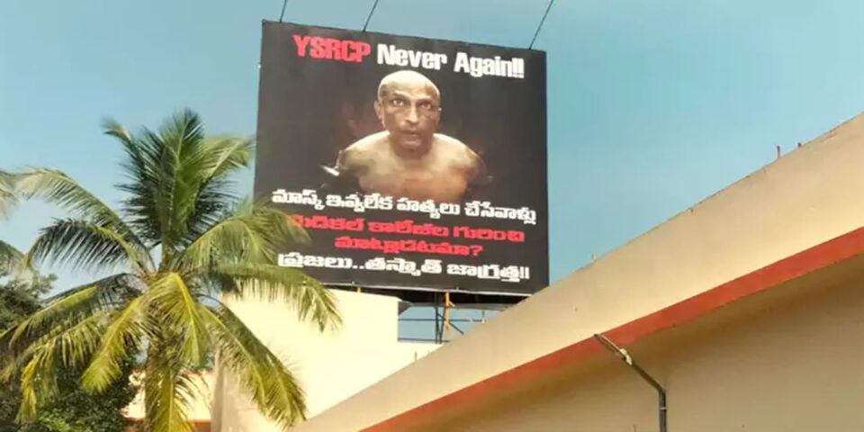 ఈరోజు జగన్ పర్యటనకు ముందు ఈ ఫ్లెక్స్ అందరి దృష్టిని ఆకర్షించింది. “డాక్టర్ కి మాస్క్ ఇవ్వలేక హత్యలు చేసే వ్యక్తులు, ఇప్పుడు మెడికల్ కాలేజీల గురించి మాట్లాడుతున్నారా?” అని ఈ ఫ్లెక్స్ లో ఉంది.