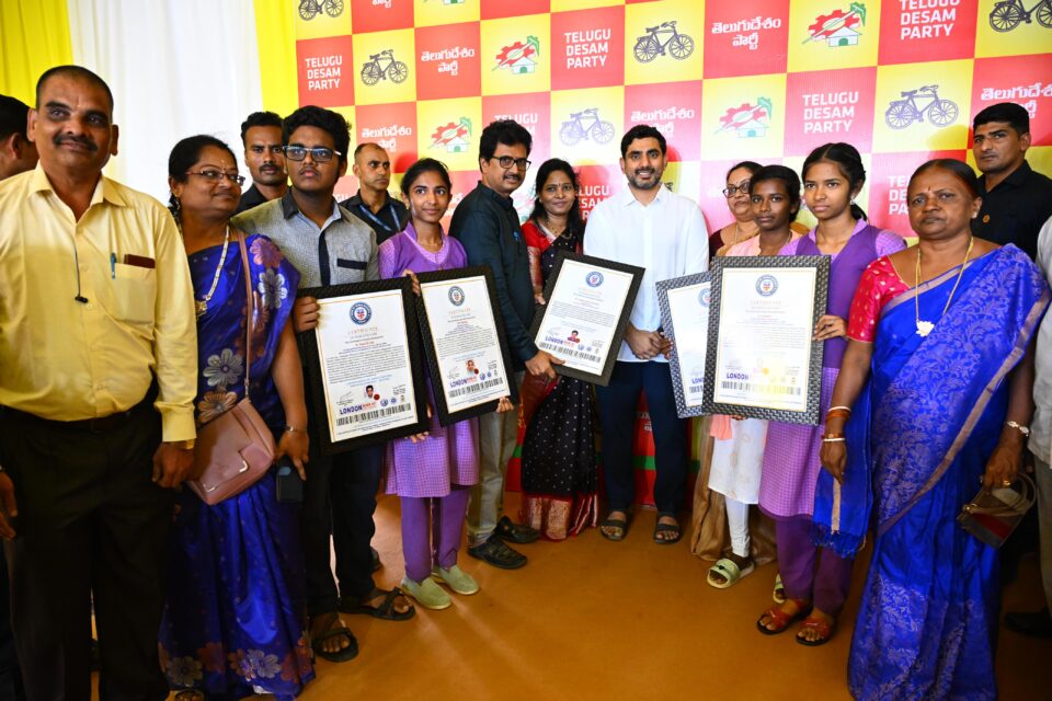 తమ అద్భుత ప్రతిభతో లండన్ బుక్ ఆఫ్ వరల్డ్ రికార్డ్స్ లో స్థానం సంపాదించిన నలుగురు ప్రభుత్వ పాఠశాల విద్యార్థులను విద్య, ఐటీ శాఖల మంత్రి నారా లోకేష్ అభినందించారు.