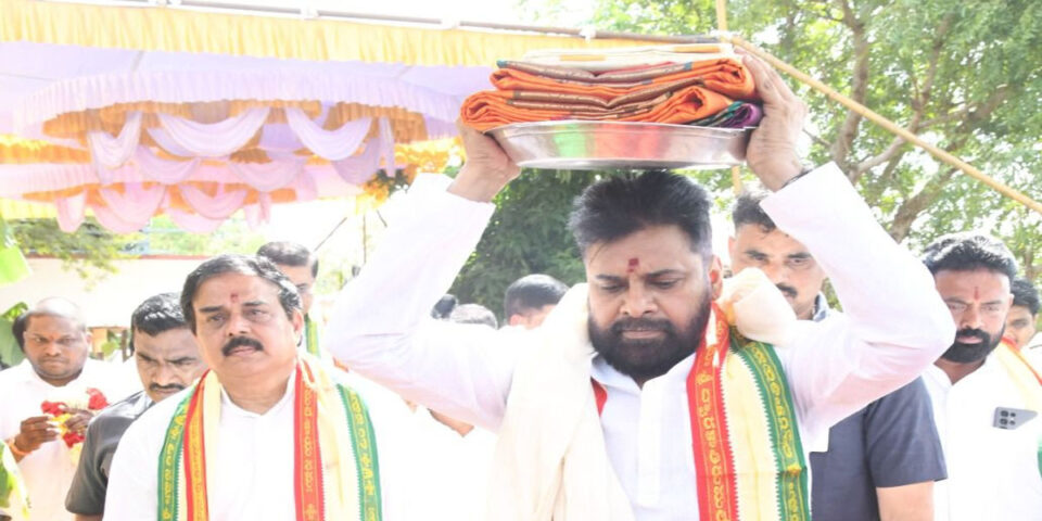 ఆలయానికి విచ్చేసిన సందర్భంలో తొలుత శ్రీ పవన్ కళ్యాణ్ గారికి ఛైర్మన్ శ్రీ రాజబహదూర్ నివృతరావు, ఈఓ శ్రీ వి.ఎస్.ఎన్. మూర్తి ఆధ్వర్యంలో వేదపండితులు పూర్ణకుంభంతో ఘన స్వాగతం పలికారు.