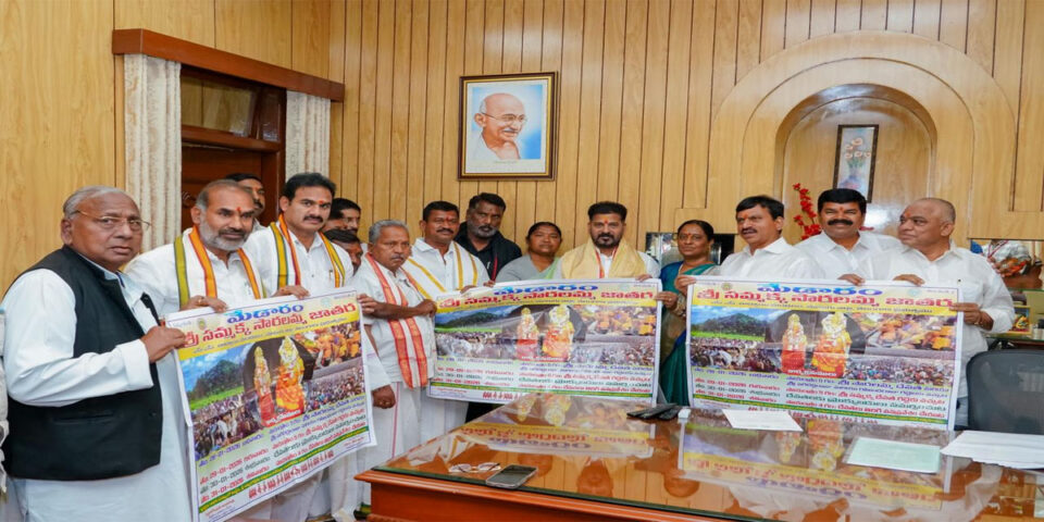 మంత్రులు కొండా సురేఖ, ధనసరి అనసూయ సీతక్క, పొంగులేటి శ్రీనివాస రెడ్డి , అడ్లూరి లక్ష్మణ్ కుమార్ , మేడారం ఆలయ పూజారులతో కలిసి అసెంబ్లీ ఛాంబర్లో ముఖ్యమంత్రి ని కలిసి జాతర ఆహ్వాన పత్రికను అందజేశారు.