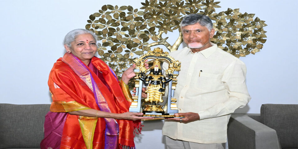 రాష్ట్ర పర్యటనకు వచ్చిన కేంద్రమంత్రి నిర్మలా సీతారామన్ గురువారం ముఖ్యమంత్రి చంద్రబాబుతో మర్యాదపూర్వకంగా భేటీ అయ్యారు.
