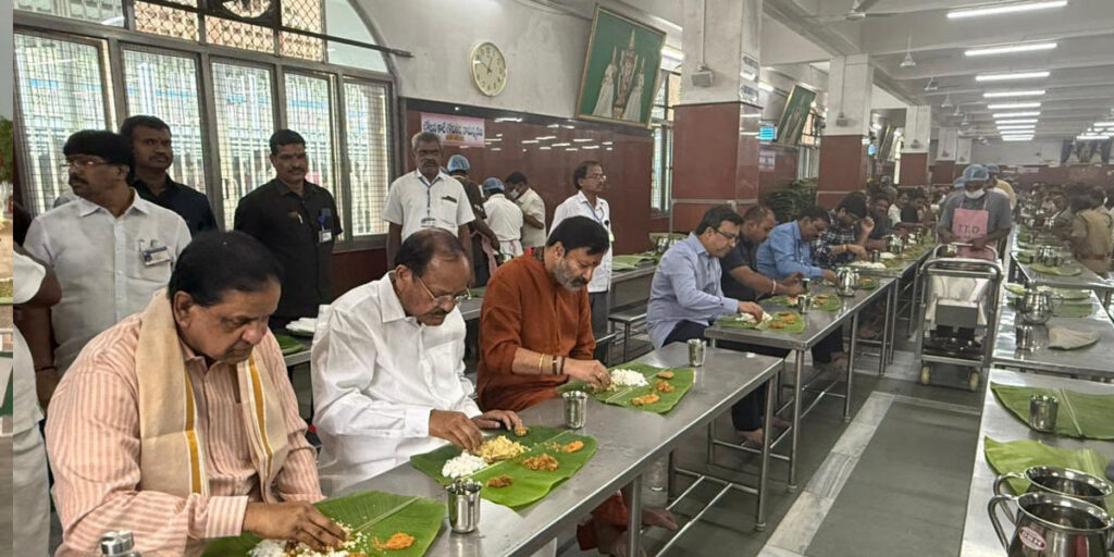 “కలియుగ ప్రత్యక్షదైవం శ్రీ తిరుమల శ్రీనివాసుని దర్శనానికి కుటుంబ సభ్యులతో కలిసి తిరుమలకు వచ్చిన సందర్భంగా, ఇక్కడి మాతృశ్రీ తరిగొండ వెంగమాంబ అన్న ప్రసాద కేంద్రంలో ఆన్నప్రసాదాన్ని స్వీకరించడం ఆనందదాయకం.